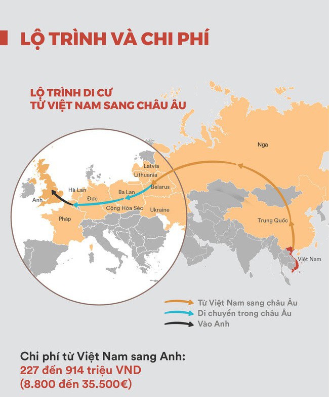 Theo các bằng cớ thu thập được ở Ba Lan, phí quá cảnh từ Việt Nam đến Ba Lan là € 13.000 - € 17.000 mỗi người và phí làng nhàng để di chuyển hợp pháp từ Việt Nam đến Moscow là khoảng € 13.000, tỉ dụ như bằng visa du lịch. Số tiền này được trả ở Moscow và sờ soạng các bước tiếp theo của hành trình sẽ phải thêm phí.